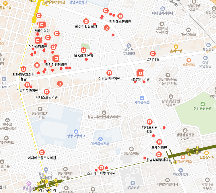 서울 강남구 청담동은 피부과 및 미용 클리닉이 밀집된 지역으로 다양한 피부 고민을 해결할 수 있는 전문 의료기관들이 위치해 있습니다.