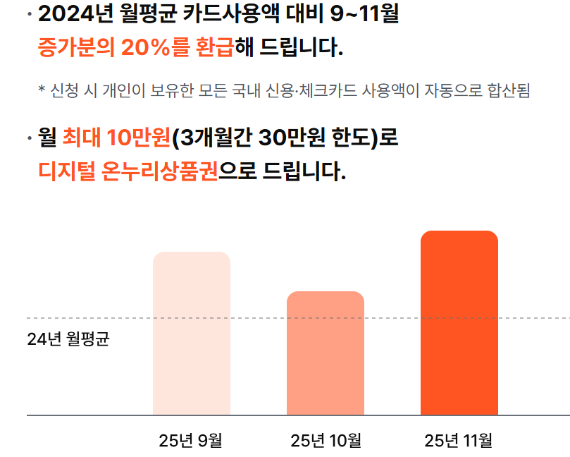 상생페이백은 2024년 월평균 카드 소비액보다 2025년 9월에서 11월 사이의 카드 소비액이 늘어난 만큼,