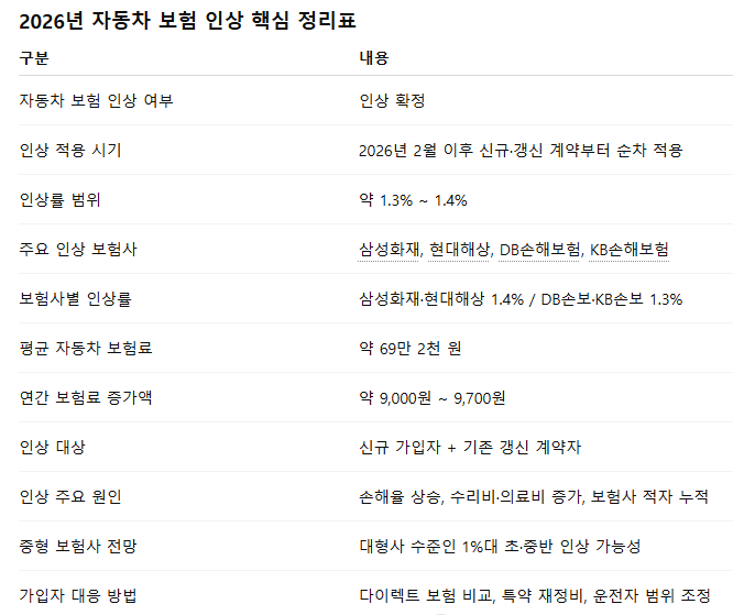 2026년 자동차보험료 인상 여부, 인상율 조건 금액 계산 자동차 보험료 비교 가입 방법